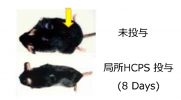 - マウスの背中(皮下)に腫瘍細胞を投与し腫瘍を形成させてから、8日間HCPSをその主要近傍に投与した。
