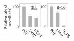 - 上のグラフは、HCPSが、プロテオグリカン組織に対する3LLおよびB16細胞の浸潤を強力に抑制する培養試験の結果を示している。