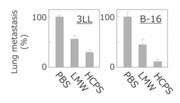 - 下のグラフは、2種類の腫瘍細胞の転移をHCPSが強く抑制したことを示している。