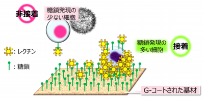 糖鎖発現が異なる細胞を糖結合性タンパク質“レクチン”で分離する方法。