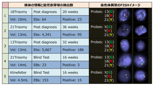 分離・回収された赤芽球から男性染色体や父型遺伝子が検出されれば胎児の細胞となります。