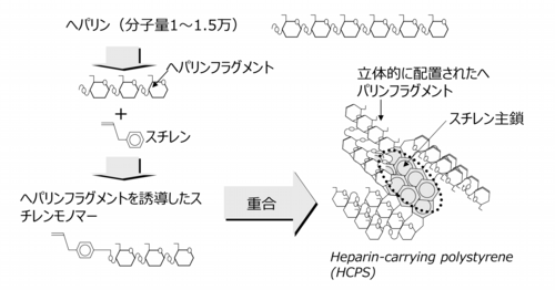 - フラグメント化したヘパリンをスチレンに誘導し再高分子化します。