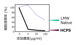 - 上のグラフは、HCPSが、プロテオグリカン組織に対する3LLおよびB16細胞の浸潤を強力に抑制する培養試験の結果を示している。