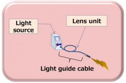 - Endoscopic operation is performed through a narrow working channel and a light guide fiber of less than 2 mm diameter. Quartz optical fiber or highly transmissive polymer is applicable to the light guides for the endscopes, and can be sorted by a Google search for key words involving ultraviolet, quartz and fiber.