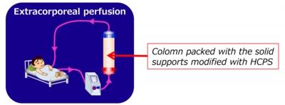 - Column packed with the solid supports immobilizing HCPS enables adsorption, removal and detection of heparin-bindable substances such as growth factors, cytokines, and so on.