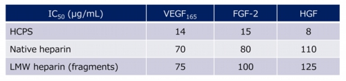 - The avidity against GFs of HCPS is higher than that of natural heparin.