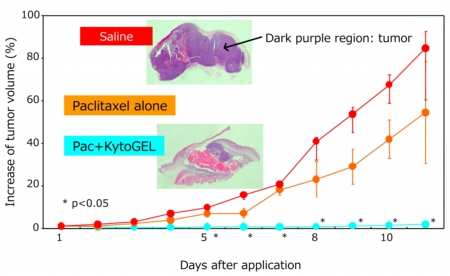 KytoGEL including Paclitaxel inhibited the expansion of model tumor which was established at mouse back.