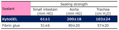 - The stress resistance of KytoGEL was compared with that of fibrin glue.